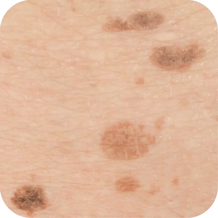 隨著年齡增長,肌膚代謝變慢,可能在臉部、手背或身體出現色素沉澱或角質堆積。老人斑多為褐色、黑色,略為隆起,部分會有粗糙表面。這類斑點雖無害,但影響外觀,想處理通常需透過雷射或冷凍治療。