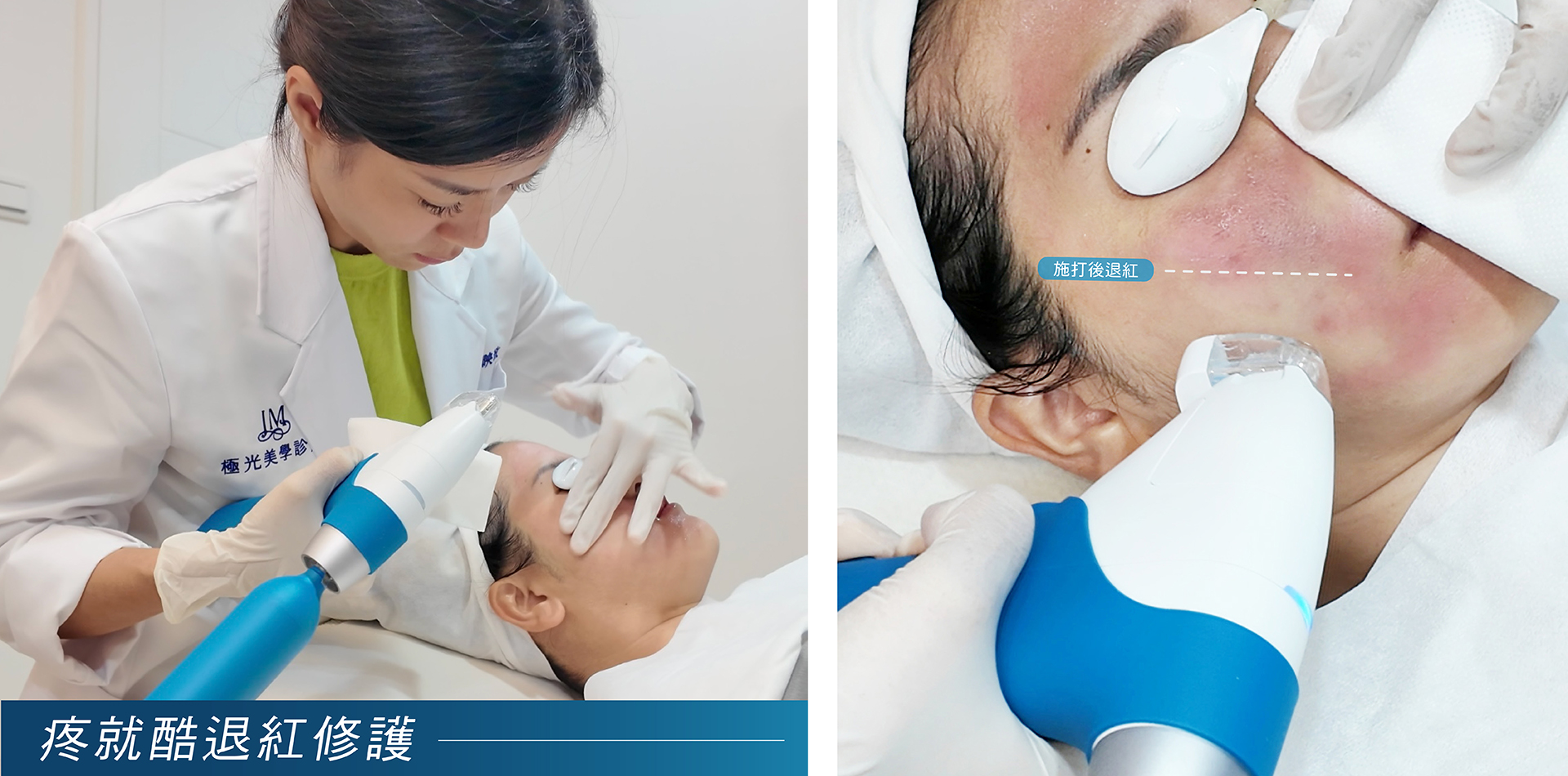 - 皮秒雷射術後會出現類似日曬後的微紅熱感,視個人膚質不同,退紅時間約數小時至兩天不等,需要時可搭配冰敷加速緩解,並加強保濕